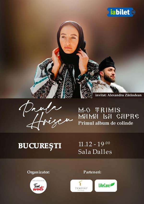 Vă salut oameni faini, sunt Paula Hriscu și de abia aștept să împărtăşim emoție și trăiri în fiecare clipă pe care o vom petrece împreună în cadrul acestui turneu unde eu îmi lansez primul album de colinde „M-o trimis mama la capre”. Albumul mult așteptat de voi, dar și de mine.