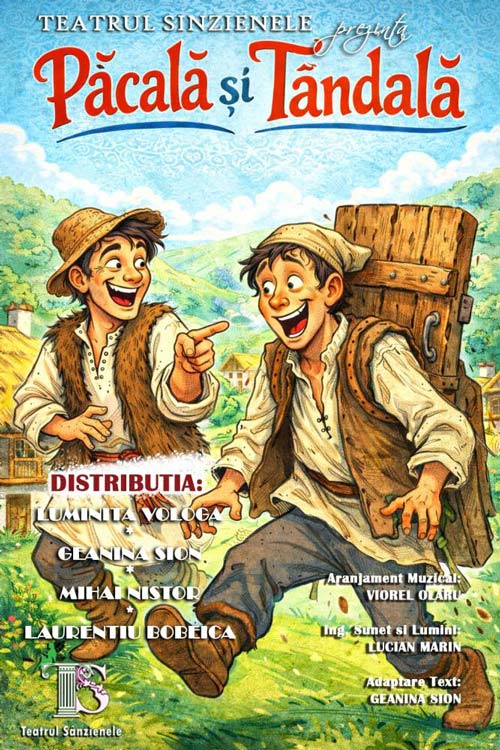 Piesa muzicala Păcală și Tândală, adaptare după celebrele snoave românești, este un spectacol ce binedispune, o comedie dinamică, plină de învățături, ai cărei protagoniști sunt cei doi năstrușnici eroi ai snoavelor populare românești, cunoscuți pentru istețimea lor, bine ascunsă sub masca naivității, simplității și umorului. Colindăm alături de ei frumoasa lume a satului românesc, cu tradiții și obiceiuri, cu personaje pitorești, cu dansuri, cântece, vorbe de duh și întâmplări nemaiauzite.