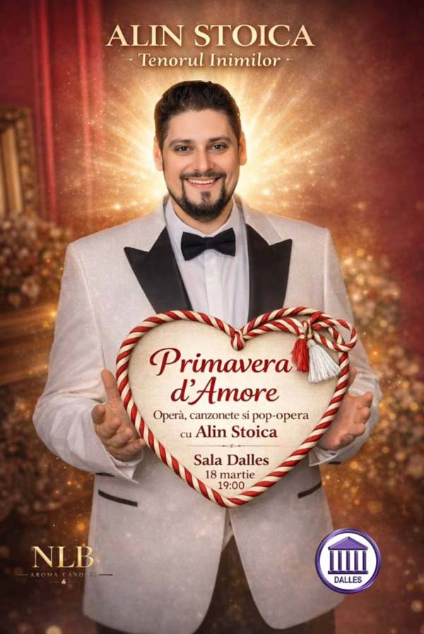 Primăvara aceasta, tenorul Alin Stoica – „Tenorul Inimilor” vă invită la o seară specială, plină de emoție, eleganță și muzică de suflet: „Primavera d’Amore”, un concert în care iubirea, vocea și frumusețea marilor melodii se întâlnesc într-o atmosferă caldă și rafinată.