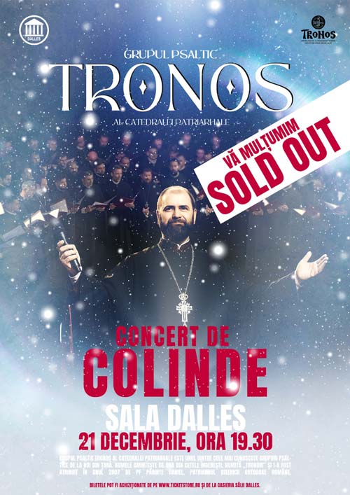 Aflat deja la cea de-a patra ediție la Sala Dalles, Concertul de colinde susținut de Grupul Psaltic „Tronos” condus de părintele Arhidiacon Mihail Bucă, protopsaltul Catedralei Patriarhale din București, va aduce si anul acesta multă emoție si bucurie publicului nostru.