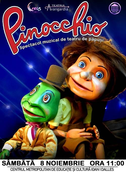 Sala Dalles Bd. Nicolae Bălcescu, nr. 18, BucureștiCelebra poveste a lui Pinocchio este cunoscută și iubită de copiii din întreaga lume. Micii spectatori sunt invitați să redescopere povestea scrisă de Carlo Collodi, într-un spectacol muzical cu păpuși și marionete, antrenant și educativ.