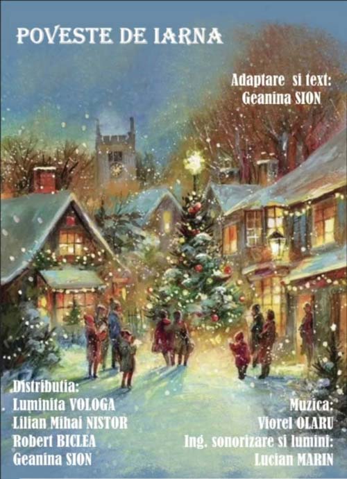 Sala Dalles Bd. Nicolae Bălcescu, nr. 18, BucureștiSpectacolul POVESTE DE IARNĂ este un spectacol muzical-interactiv cu actori profesioniști care împletește lumea basmului în care trăiesc personaje autentice românești: Baba Hârca, Moș Crăciun, Zâna Iarnă, Fulgii de Zăpadă, Spiridușii, cu tradițiile autohtone, cum ar fi jocul caprei, jocul ursului și alte obiceiuri.