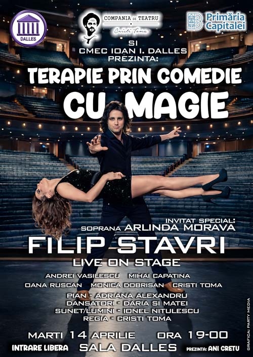 Centrul Metropolitan de Educație și Cultură „Ioan I.Dalles” în parteneriat cu Compania de Teatru „Cristi Toma” organizează spectacolul „Terapie prin comedie cu magie”. Intrarea liberă, in limita locurilor disponibile.